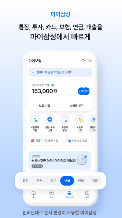 마이삼성 기능은 머니, 투자, 카드, 보험, 연금, 대출 등으로 구분되어 있어 필요한 서비스를 빠르게 찾을 수 있습니다. 서비스별 구조화로 접근성이 크게 향상됩니다. 사용 빈도가 높은 기능을 빠르게 이용할 수 있는 것이 핵심입니다. 또한 퀵메뉴 설정을 통해 개인 맞춤 환경을 구성할 수 있습니다.