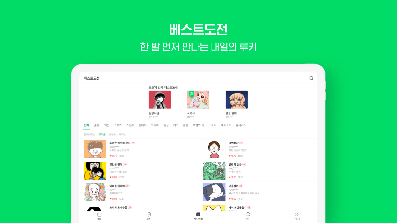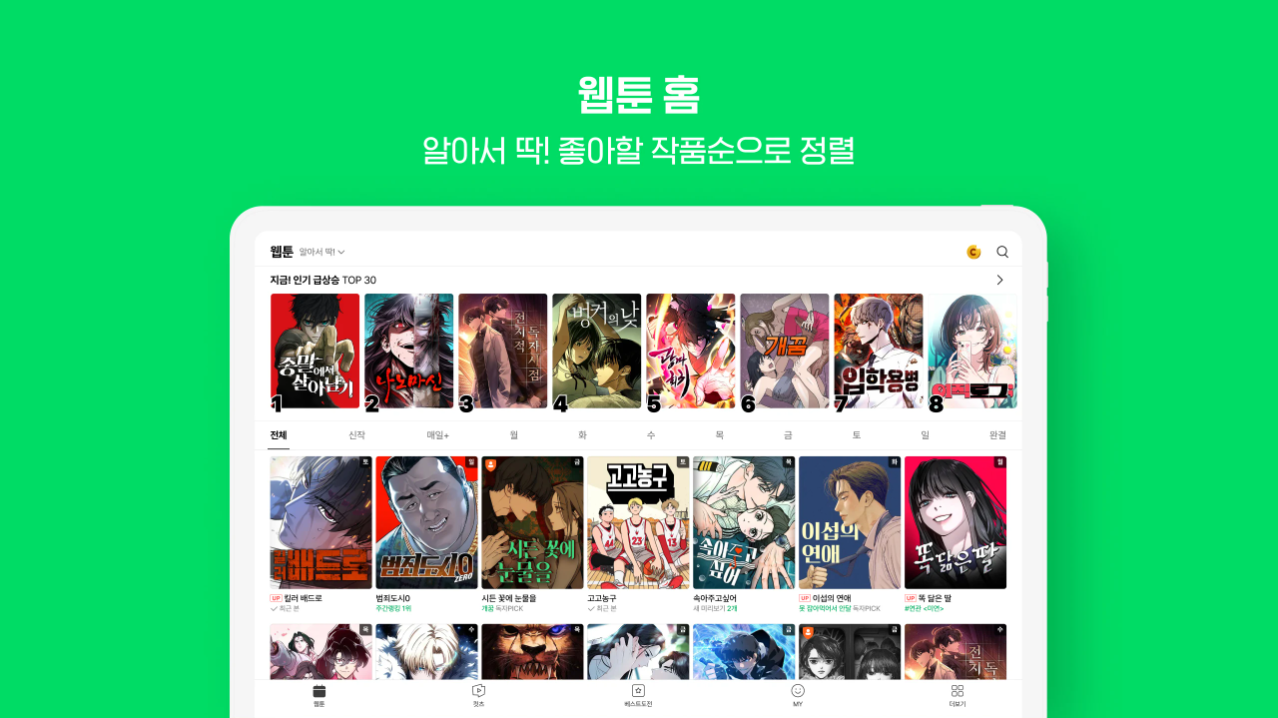 네이버웹툰은 매일 새로운 작품을 제공하며 다양한 장르를 손쉽게 탐색할 수 있는 대표적인 콘텐츠 플랫폼입니다. 사용자 맞춤형 기능으로 편리한 감상 환경을 제공합니다.