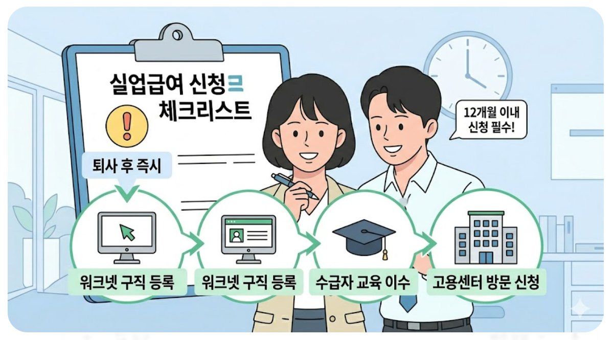 신청 시기는 매우 중요합니다. 퇴사 이후 가능한 빠르게 절차를 진행해야 하며 일정 기간 내 신청하지 않으면 불이익이 발생할 수 있습니다. 신청 지연은 수급 기간 감소로 이어질 수 있습니다. 워크넷 등록과 교육 이수는 필수 절차입니다. 사전에 준비하면 절차를 빠르게 진행할 수 있습니다.