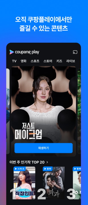 쿠팡플레이는 다양한 콘텐츠를 한 곳에서 즐길 수 있는 스트리밍 서비스로, 스포츠 중계부터 영화, 드라마, 예능까지 폭넓은 선택지를 제공합니다. 간편한 사용성과 안정적인 시청 환경으로 만족도가 높습니다.