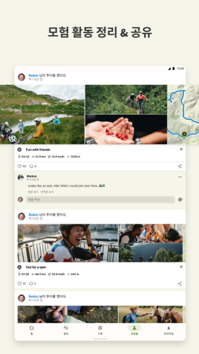 GPS 기반 기록 기능을 통해 활동 데이터를 저장하고 공유할 수 있습니다. 사진과 팁을 추가하여 개인적인 기록을 확장할 수 있습니다. 경험을 공유하며 다른 사용자에게 영감을 줄 수 있습니다. 커뮤니티 참여도를 높이는 핵심 기능입니다. 이 기능은 개인 기록 관리와 동시에 소셜 활동을 결합한 형태로 활용됩니다.