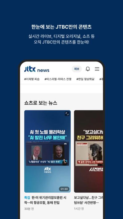 JTBC 뉴스앱 실시간 뉴스 전달 기능