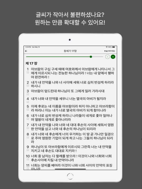 ⭐ 시력 부담 없이 성경을 읽고 싶은 모든 사용자
