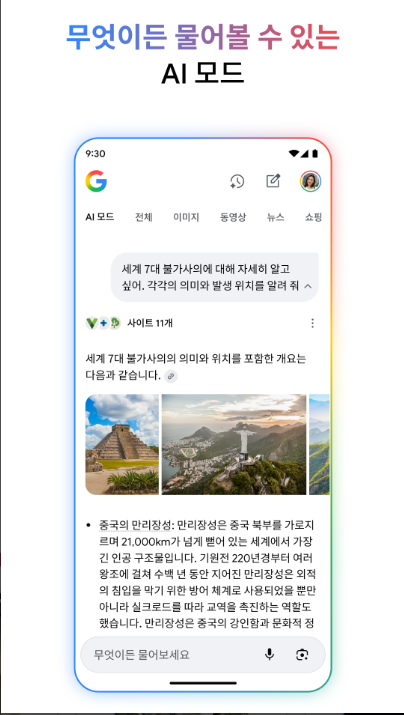 | AI 모드 | 대화형 검색 | 심층 정보 탐색 |