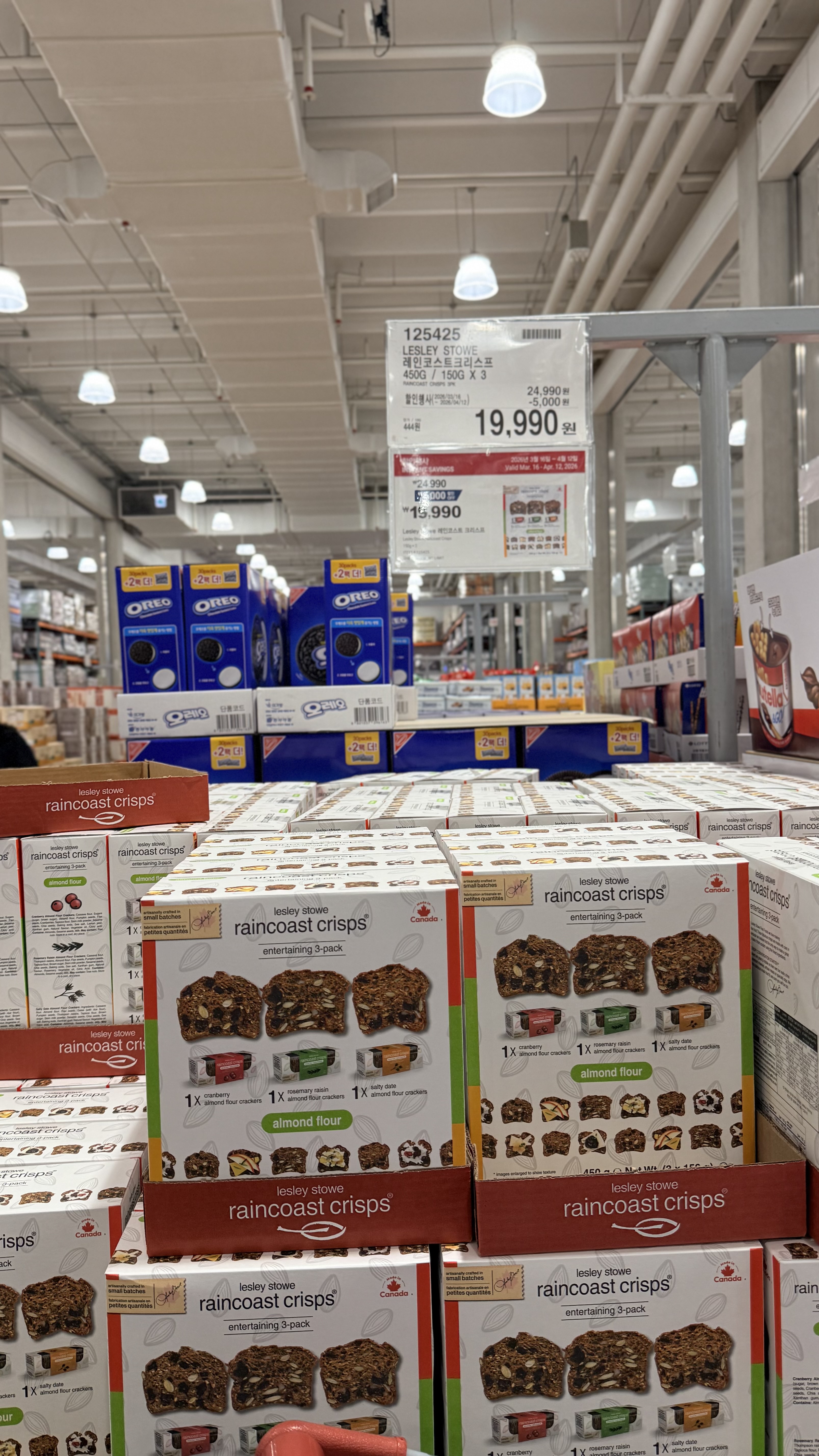 - 특징 : 크리스프캐나다산 수제 크래커. 아몬드 플라워 기반의 고급스러운 맛.