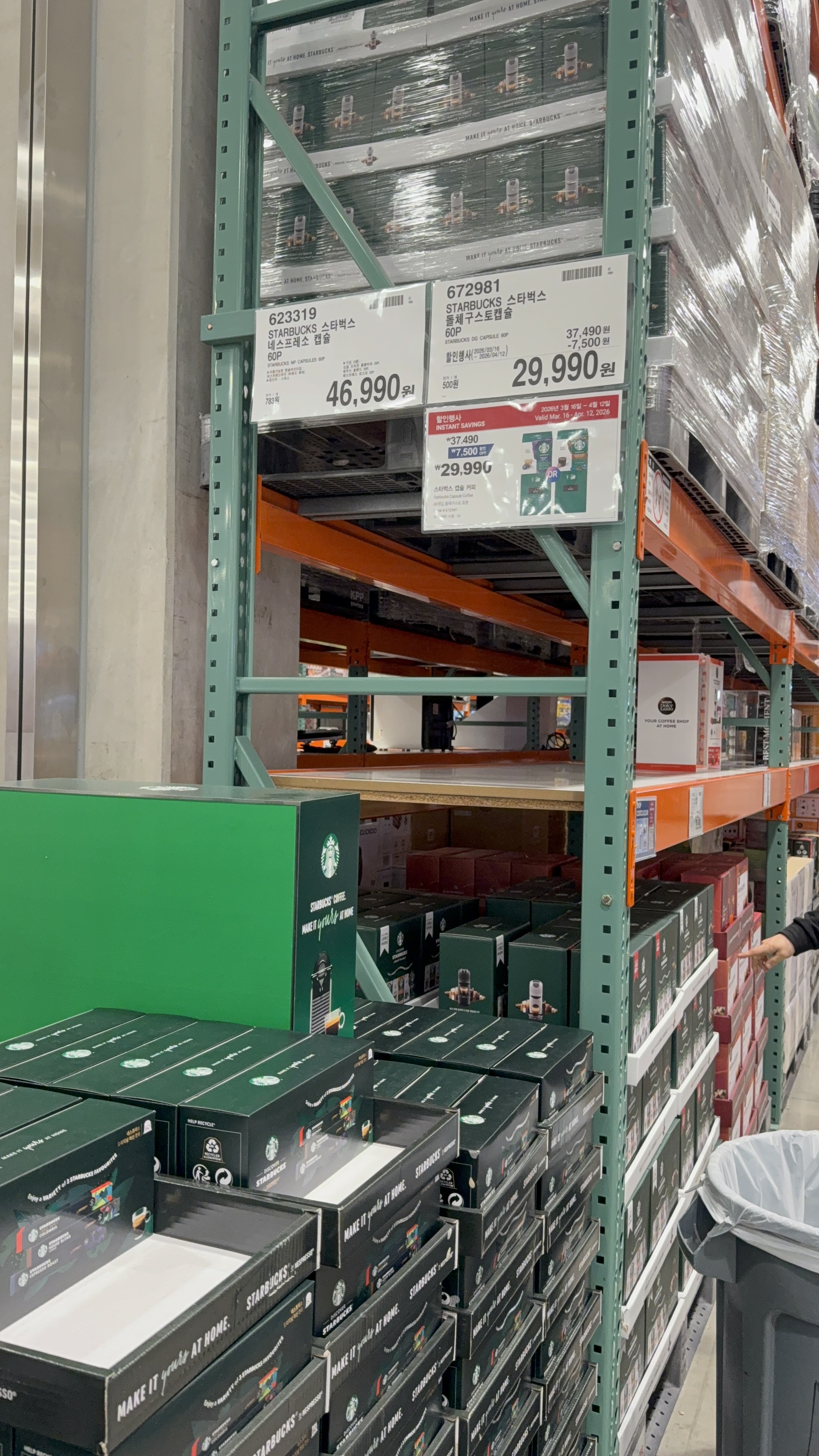 커피 한 잔의 여유를 즐기신다면 이번 할인이 기회입니다. 스타벅스와 카페 깔레오 캡슐이 나란히 할인 중이에요.