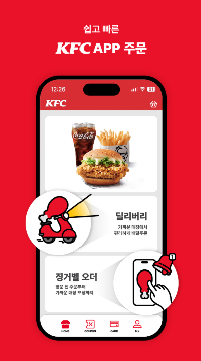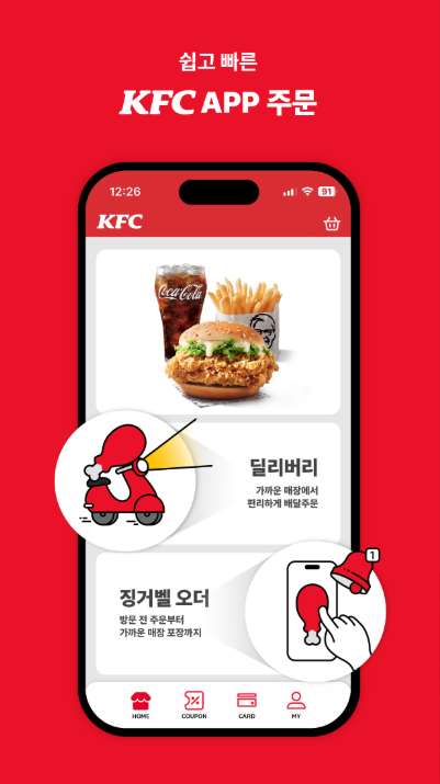 KFC 앱은 주문과 동시에 포인트 적립, 쿠폰 제공, 간편결제까지 한 번에 이용 가능한 통합 서비스입니다. 다양한 기능을 통해 사용자 편의성과 혜택을 동시에 제공합니다.