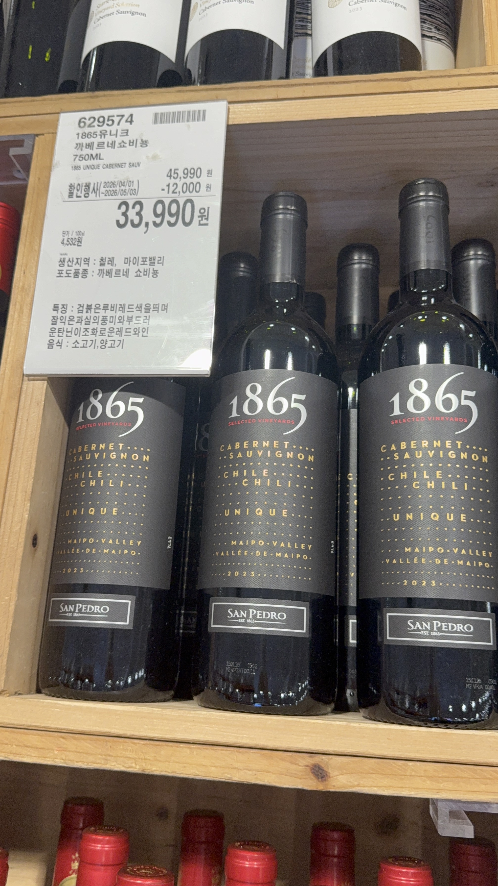 - 특징 : 한국인이 가장 사랑하는 '1865'의 상위 라인업인 '유니크'입니다. 일반 '셀렉티드 빈야드'보다 포도 선별이 까다롭습니다.